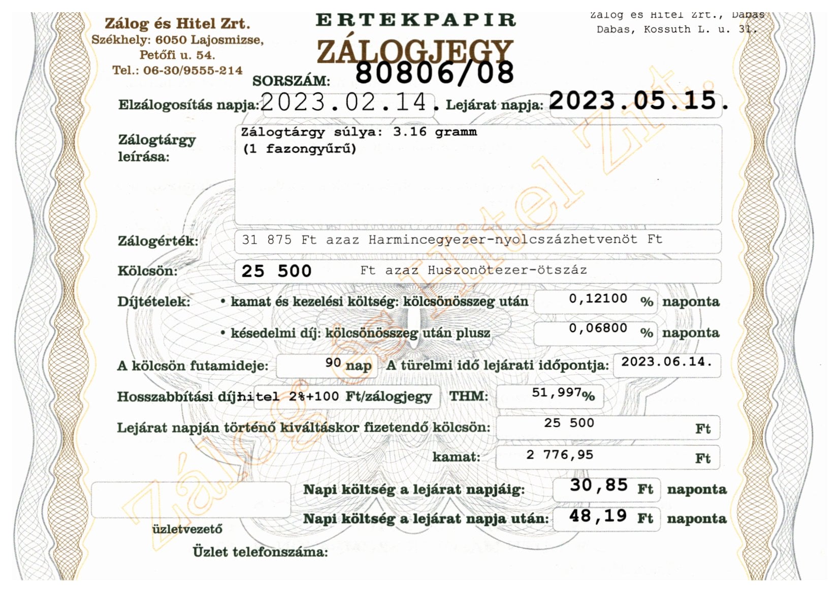 D-80806 sz. zálogjegy